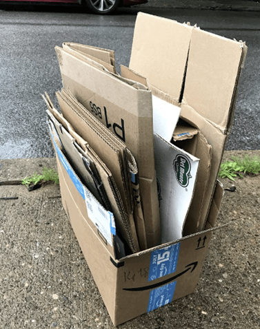 Place extra cardboard boxes at the curb for pickup on the day after your trash collection. Cardboard will be collected and composted with yard waste. Use boxes to hold your yard waste, rather than plastic bags!