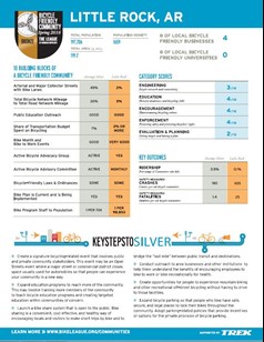 In May 2016, the League of American Bicyclists designated Little Rock a Bike Friendly Community at the Bronze (entry) level. They also included a report card to indicate the most effective next steps for Little Rock to become more bike friendly. The League has guided hundreds of communities through this process. These recommendations, tailored to our community’s strengths and challenges, can help identify and prioritize our next steps to improving our city for bicyclists. Click on report card (left) for an expanded view.