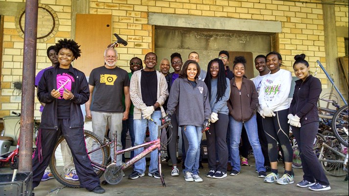 Figure 2.  Volunteers at Recycle Bikes for Kids with founder Ron King.  Photo by Recycle Bikes for Kids.