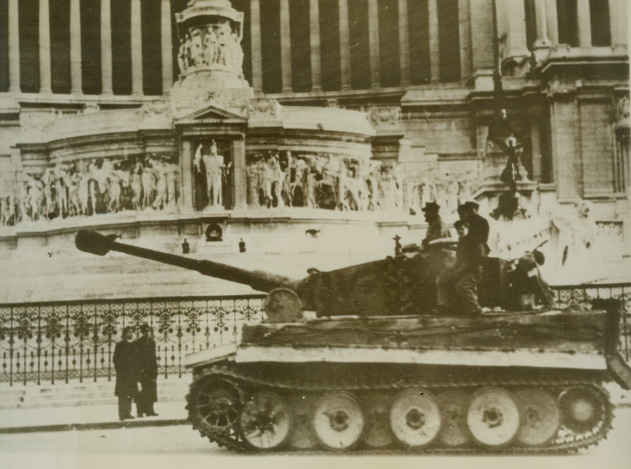 Nazi Tank in Rome, 4/5/1944. ROME – Passersby stop to stare as a huge tank, manned by Nazi personnel, rumbles through the streets of Rome, according to the German caption received with this photo. Picture was obtained through a neutral source.Credit Line (Acme);