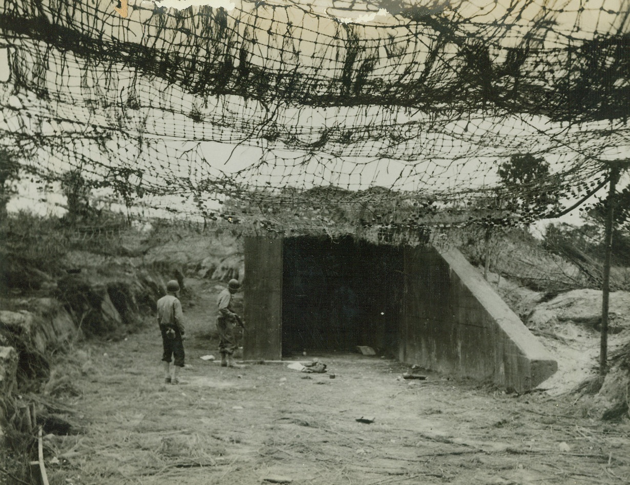 Jumping-Off Place For Robot Bombs, 8/8/1944. France – Allied soldiers examine the mouth of the ski building from which German robot bombs were to be launched for attacks on England. However, the building was left uncompleted when German workers fled in the face of the great Allied offensive drive. Credit: ACME;