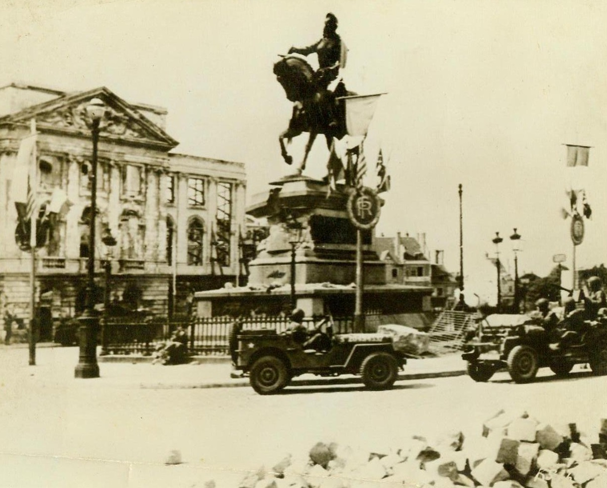 “Maid Of Orleans” Welcomes Yanks, 8/20/1944. Rennes, France — Natives of rennes, both young and old, line the sides of this street in the liberated city, raising their voices to cheer the victorious Yanks. Our warriors returned the cheers as they marched or rode through the heart of the Breton capital. 8/6/44 (ACME);