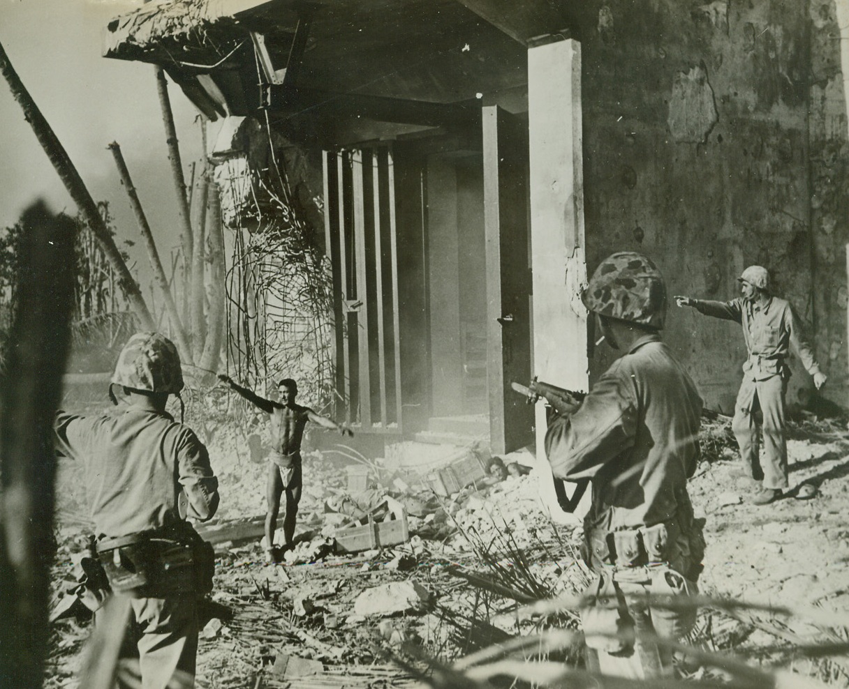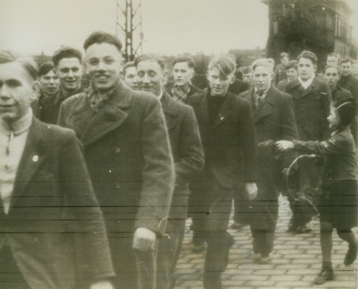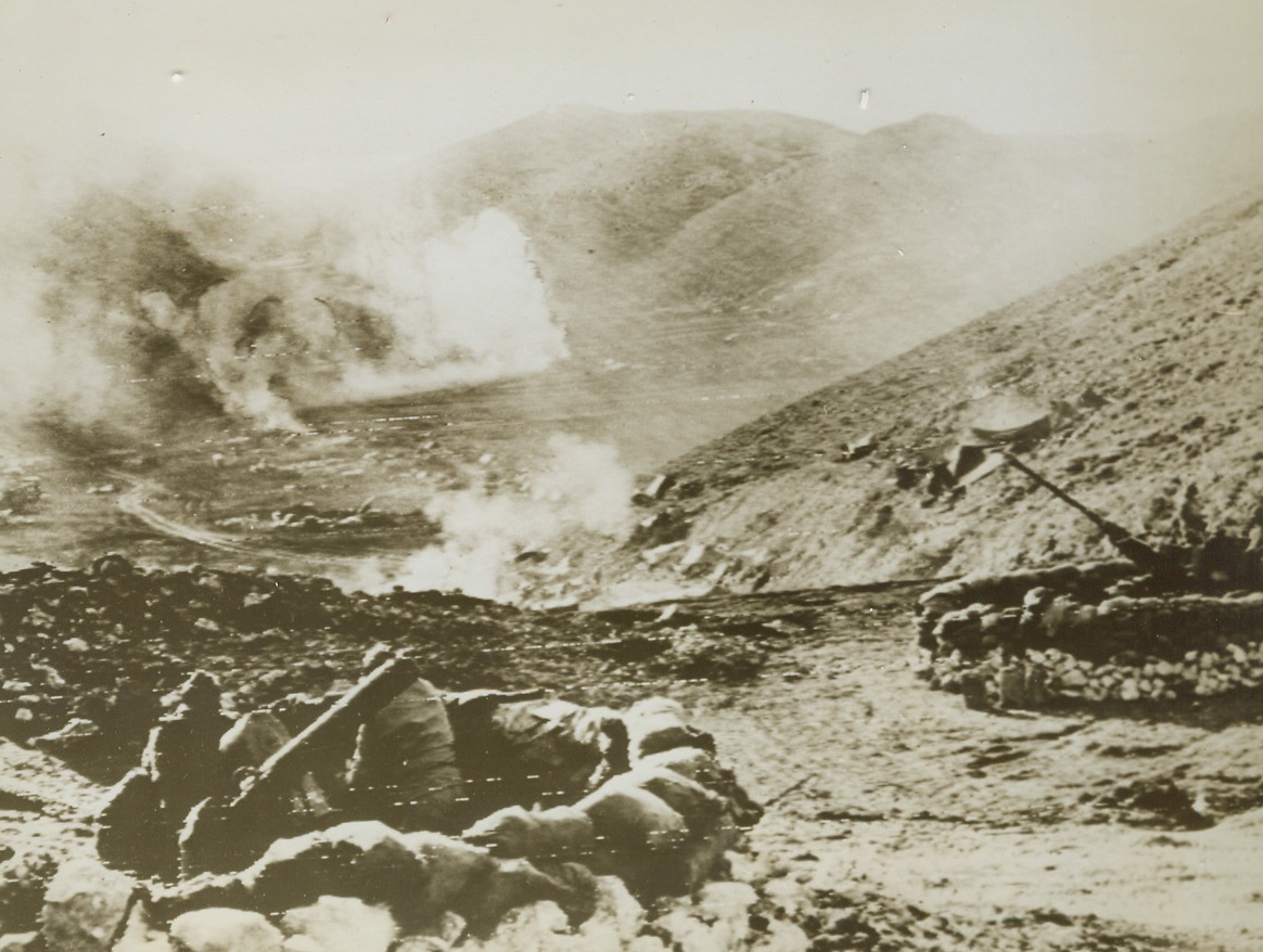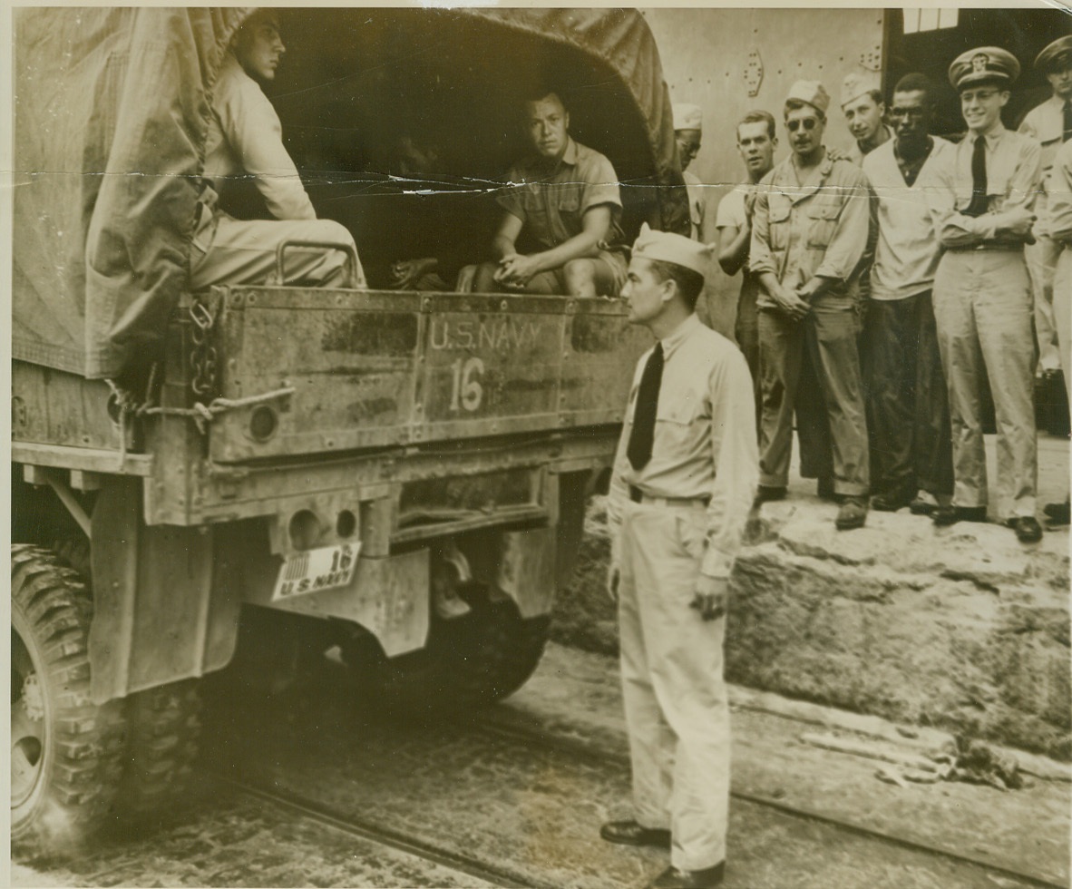 Battered at Beachhead, 2/11/1944. ITALY – Injured fighters who are able to walk, watch their more seriously wounded comrades being loaded aboard a warship off the Anzio-Nettuno beachhead. The shore may be seen, dimly, in the background.Credit Line (ACME);
