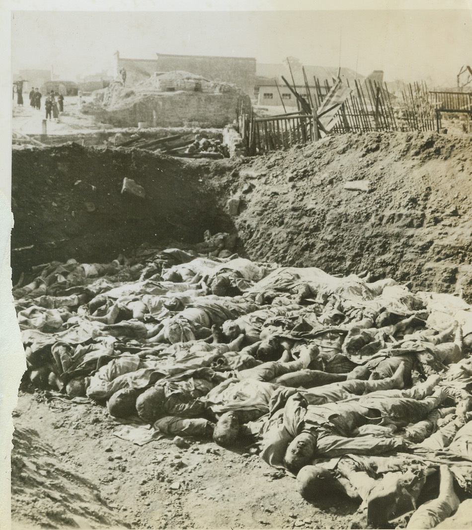 These are the Dead, 1/29/1944. Changteh, China – Chinese soldiers, in open combat, are giving their answer to Japan’s barbarity. This is a common grave for Jap soldiers, dug by the Chinese, on the battlefield at Changteh, where the sons of China routed their enemies on December 3rd. Taken by the Chinese Ministry of Information, this is one of the first photos of Changteh battle scenes to be released. Credit: (ACME);