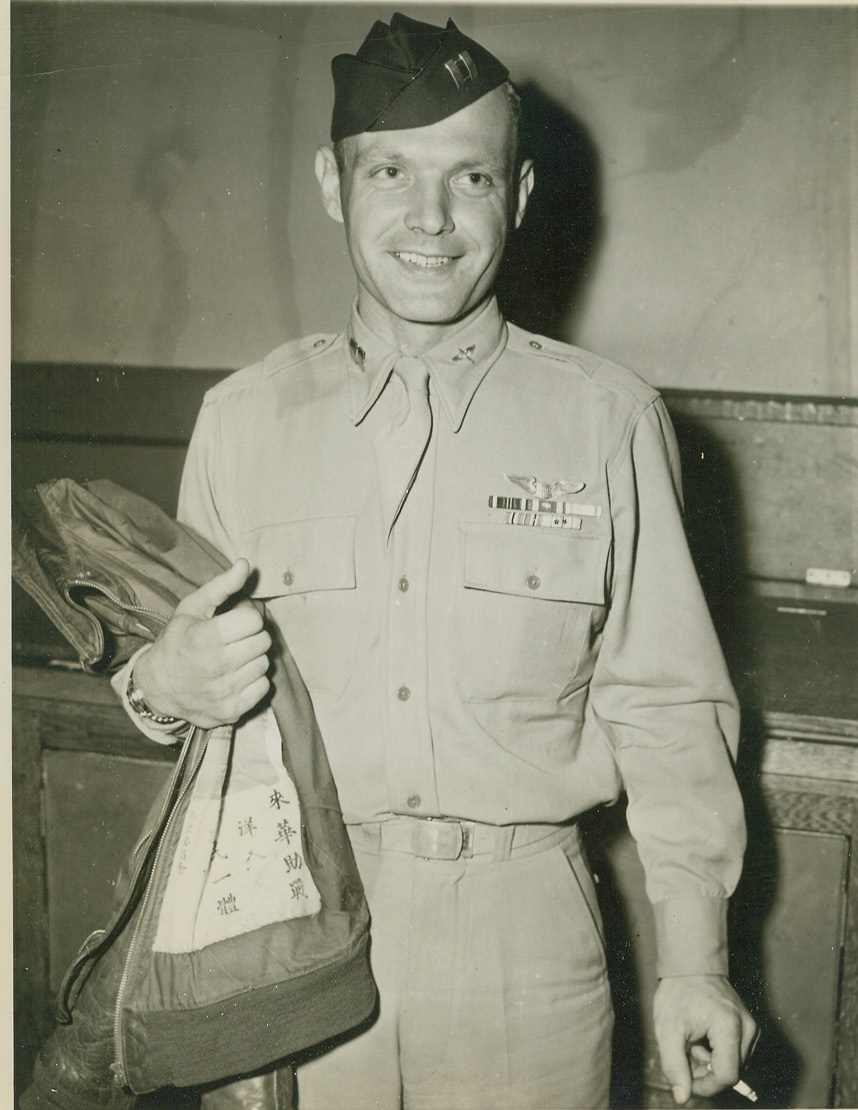 MAYBE HE’S JUST MODEST!, 1/29/1944. CHICAGO – Capt. Robert Bixby, 27, Helena, Mont., holder of the Distinguished Flying Cross and the Air Medal with Clusters, who has participated in 92 missions over India, Burma and with General Chennault’s Flying Tigers, says he hasn’t shot down any Jap planes. Moreover, the Captain grins, he hasn’t even SEEN one! Credit: ACME