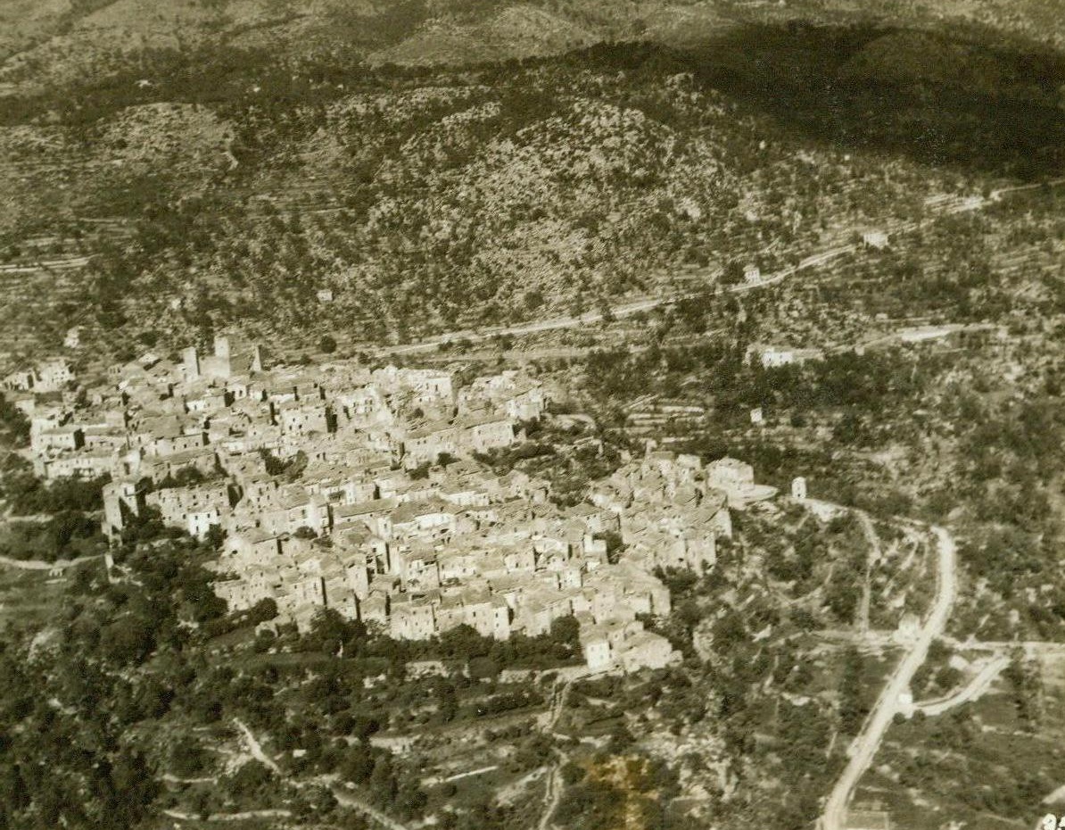 Stepping Stone to Rome, 5/25/1944. ITALY—Castleforte lies tranquilly in its mountain location in Italy after being shelled heavily by Allied artillery. The town fell to our forces early in the concerted march to Rome—hitting on all gears now. Credit-WP-(ACME Photo by Charles Seawood, War Pool Correspondent);