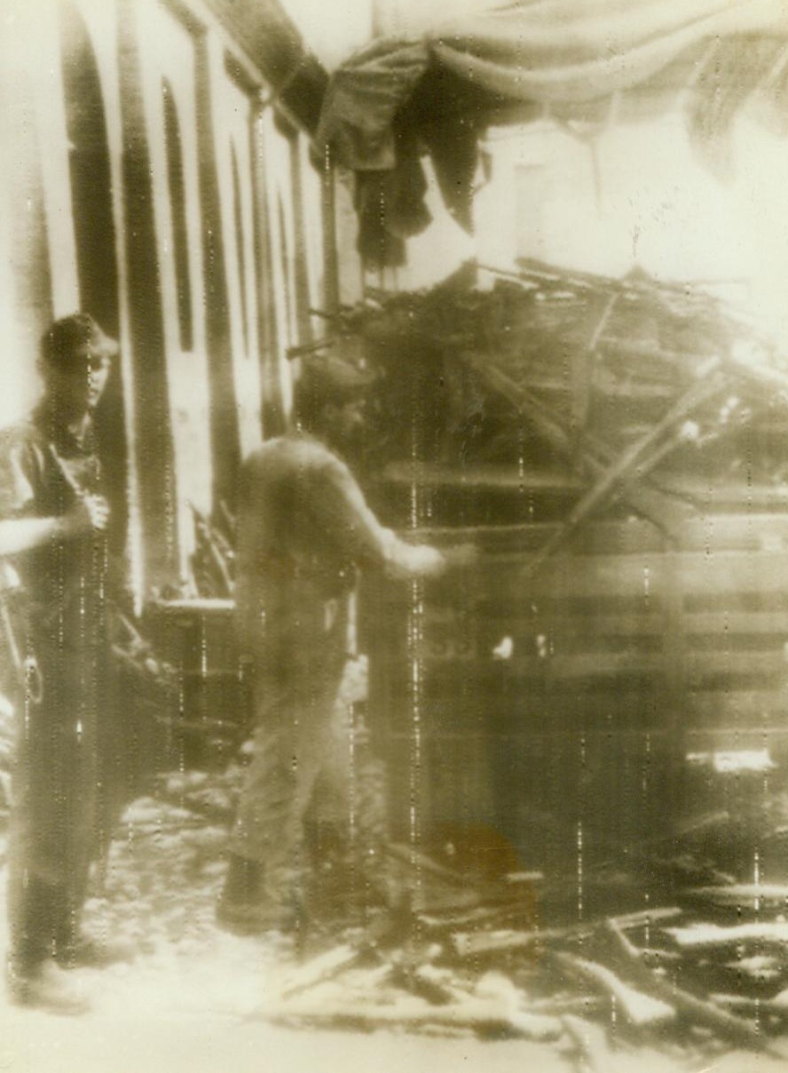 United States Troops Advance in Italy, 9/14/1943. The above photo flashed to the U S by radiotelephoto shows United States infantrymen ferreting out a German sniper who was hidden in this house during their advance through the outskirts of an Italian town. Credit: (U S Army Signal Corps Radiotelephoto from ACME);